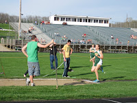 Although Christie had obligations all day on Saturday, Roger and the girls had to go back to Athens early on Saturday morning so that Emmy could participate in the opening ceremonies and parade for Sandlot softball and then play her first game of the season and so that Ellie-Kate could go to her friend, Kelsey's, birthday party. Meanwhile Chelsea did long jump and ran the 200 in Parkersburg, WV at a track meet, setting a new personal record by jumping 11 feet 10 1/2 inches.
