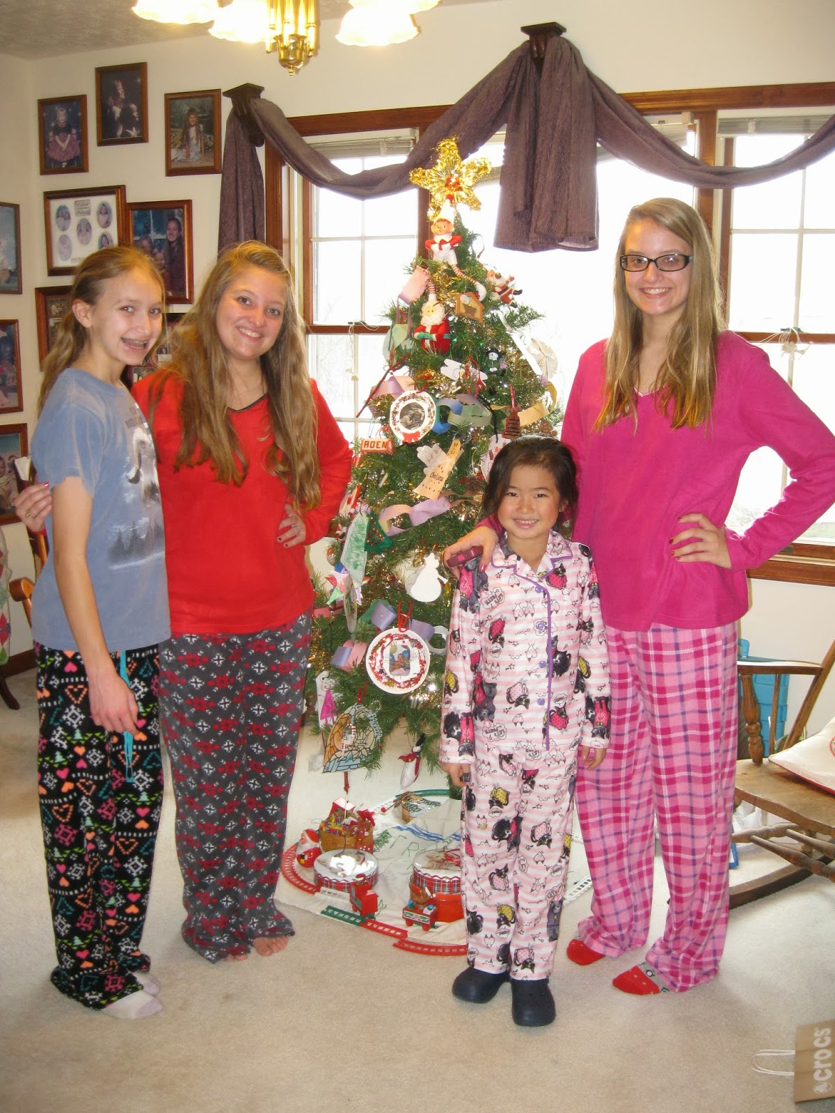 Emmy, Britti, Ellie-Kate, and Chelsea model their jammies from Grandma P.
